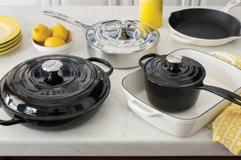Le Creuset is known for their colorful enameled cast iron cookware, which has been made in France since 1925. Today, we are proud to offer a full selection of Le Creuset cookware, including their new stainless steel, nonstick and stoneware pieces.