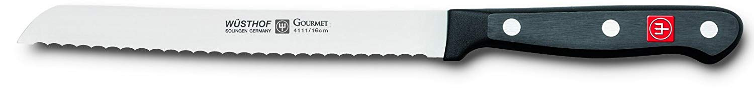 Designed by Björn Berger, a successful industrial designer born in Solingen, Germany – the world headquarters of WÜSTHOF since 1814 – EPICURE is a finely edited collection of precision-forged, full tang cutlery. EPICURE knives sport a new blade shape with dynamic, modern lines, and an inviting handle design using the same mid-tone, wood composite material found in today’s popular, high-end Epicurean® cutting boards. Ergonomically crafted for optimum comfort, the handles are purposefully sculpted to reduce fatigue, as well as look beautiful in the kitchen. In homage to the signature feature of many WÜSTHOF cutlery collections, the handle of each EPICURE knife is sturdily fastened with two stainless steel rivets. The EPICURE 5"Serrated Utility Knife is smaller than a cook’s knife but larger than a paring knife, making it the perfect knife for magnitude of tasks. A utility knife is much like a versatile paring knife and is perfect for mincing shallots, onions and herbs as well as cutting vegetables or cutting small meats. The added serrated edge has saw-like teeth that enable the blade to slice cleanly through food with delicate textures such as bread or soft vegetables and fruit.